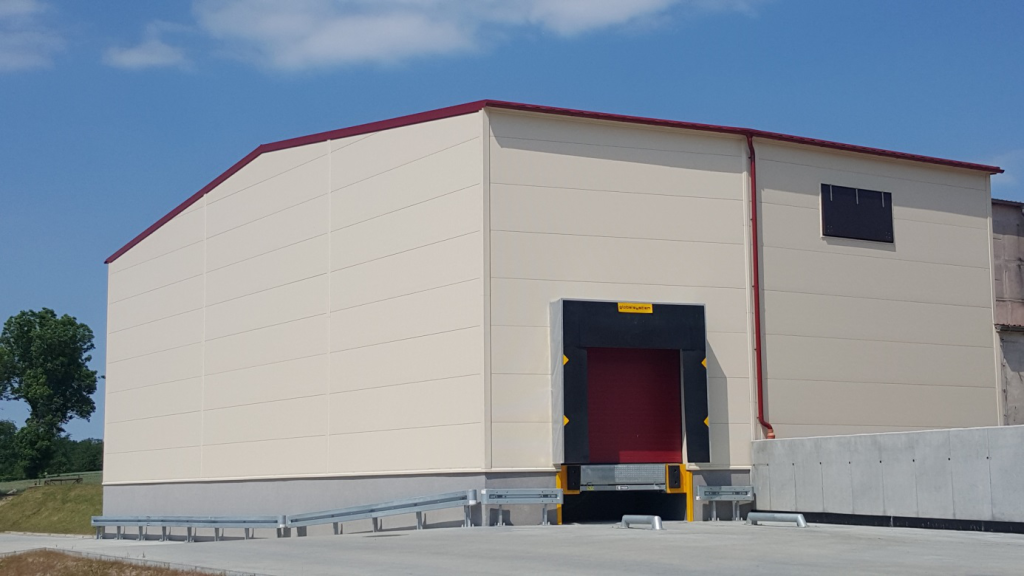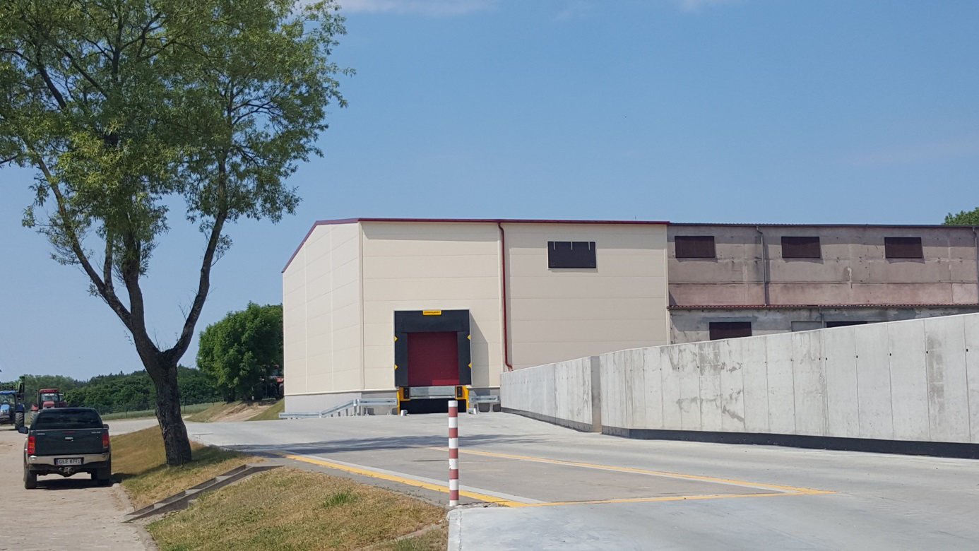 Dodatkowe wyposażenie: automatyczne klapy wentylacyjne, nagrzewnice; obudowa z płyty izolacyjnej; dok przeładunkowy wyposażony w hydrauliczną rampę przeładunkową; nawierzchnie betonowe.
